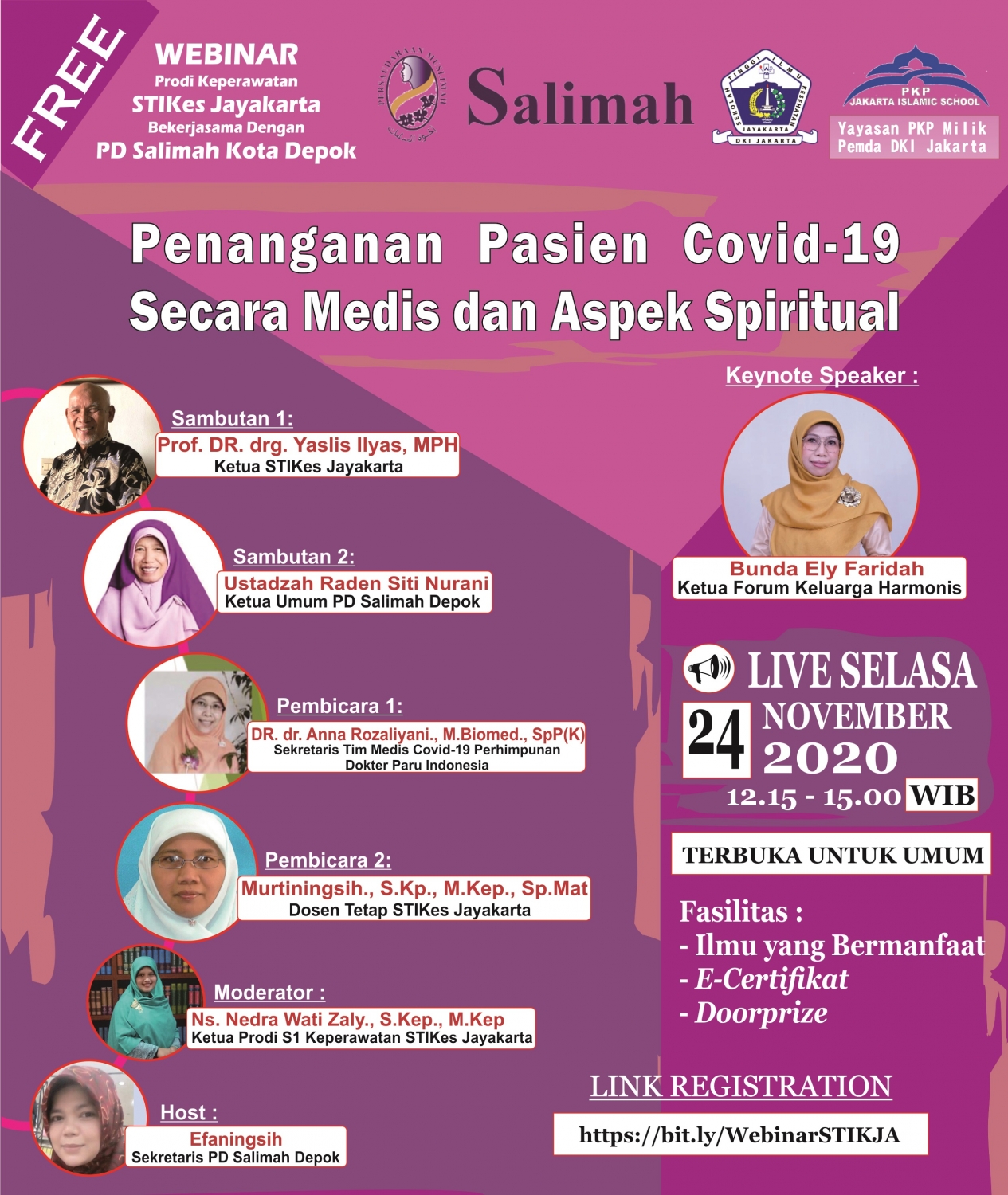 Webinar Prodi Keperawatan STIKes Jayakarta Bekerjasama dengan PD Salimah Kota Depok "Penanganan Pasien Covid-19 Secara Medis dan Aspek Spiritual"